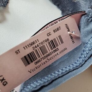 This product is a True Vintage Victoria's Secret low rise thong in size XL, made of a dark gray fabric combination of lace and cotton with elastane for stretch. The thong features a lace waist accent and is machine washable. It is a stylish and sexy piece with a cheeky design, perfect for women looking for a comfortable and breathable panty option that also offers a hint of 90s style. Made in India, this thong exudes a sense of second skin elegance and is a must-have for any Victoria's Secret fan.