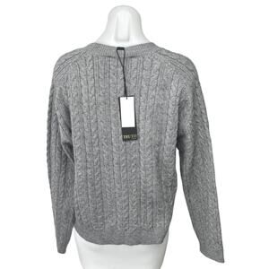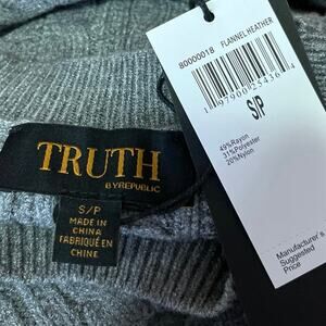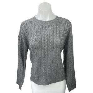 NEW Truth by Republic Gray Heather Flannel Cable Knit Pullover Sweater Top Sz S