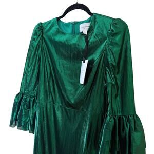 NEW Tuckernuck Lillith Maxi Dress Emerald Green Crinkle Lurex Medium $188