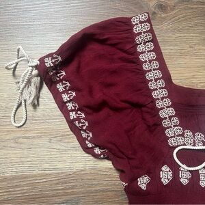 NEW Tularosa Top Maroon Red Embroidered Benny Boho Peasant Top Medium