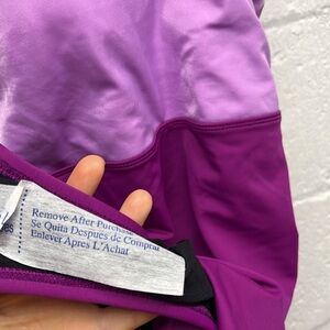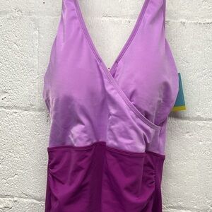 NEW Tummy Control Swimsuit by bel harbour size 12 color block purple . New with liner. Pads and shelf bra support. Wrap design can be used for easy nursing access too