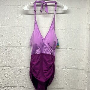NEW Tummy Control wrap Swimsuit by bel harbour size 12 color block purple