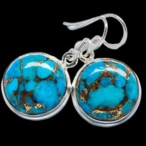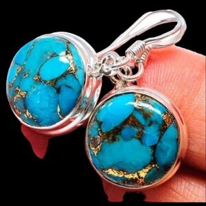 NEW Turquoise look round earrings fish hook 925 silver plated