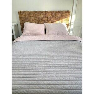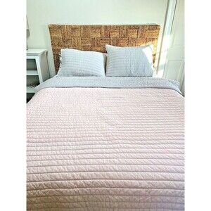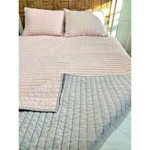 NEW Twin Restoration Hardware Reversible Channel Quilt & 2 Shams Pink Gray