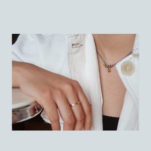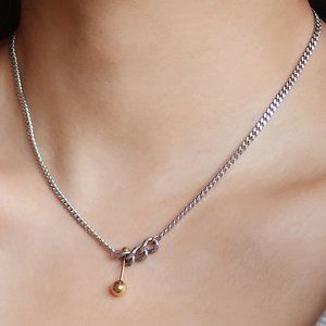 NEW Two Tone 18K Gold Plated Link Chain Gold Ball Bar Necklace