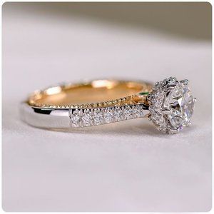 NEW Two Tone Round Solitaire Diamond Silver Ring