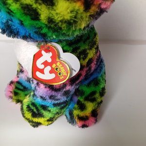NEW Ty Beanie Boo DOTTY the Rainbow Leopard Medium 9” Plush With Tags