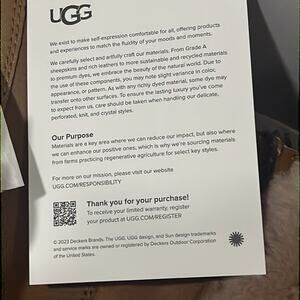 8mm fluff poly knit fabric lining, 17mm UGGplush™ 80% upcycled wool, 20% TENCEL™ Lyocell lining or 17mm UGGplush™ 60% upcycled wool, 40% TENCEL™ Lyocell lining