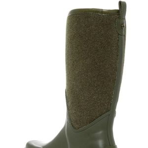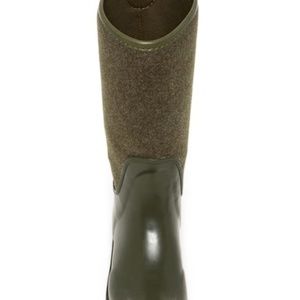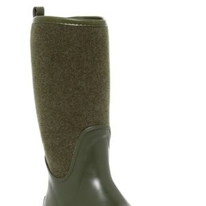 Fuzzy panels and matte rubber distinguish a waterproof rain boot that comes pre-treated to resist and and repel stains and keeps your foot comfy with soft jersey lining and a plush UGGpure(TM) insole. UGGpure(TM) is a moisture-wicking textile made entirely from wool that's crafted to feel and wear like genuine shearling.