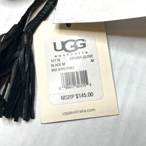 NEW UGG Black Quilted Leather Gloves Fringe Suede Wool Cashmere Lining Driving