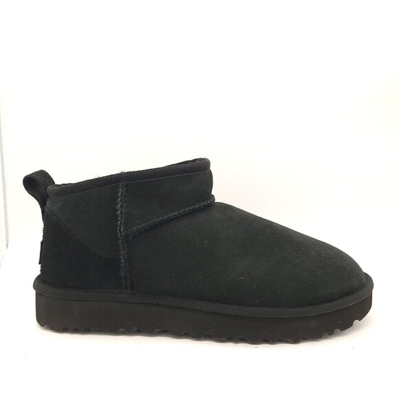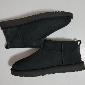 NEW UGG Bootie Classic Ultra Mini Boots Womens 11 Black Suede Winter Cozy Fur