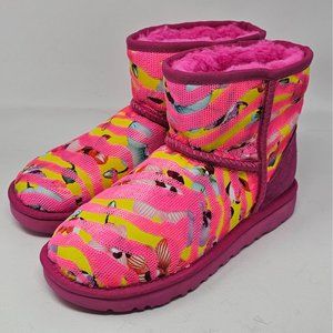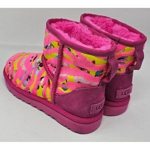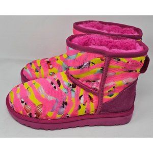 NEW!! UGG CLASSIC MINI BOOTS WOMENS SIZE 6 US TIGER FLOWER TAFFY PINK SUEDE SEQU