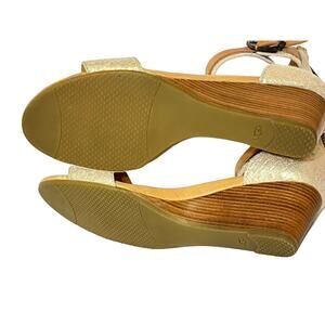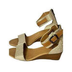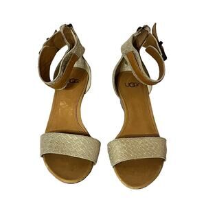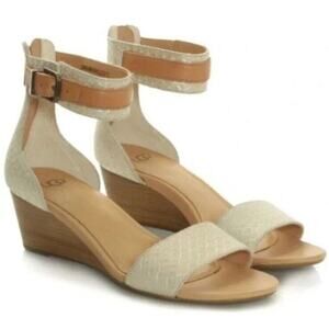 NEW UGG Char Wedge Ankle Sandals •6.5• Gold Beige Leather Woven