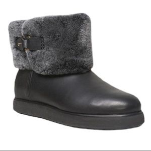 NEW UGG Classic Berge Mini Leather and Genuine Shearling Black Boot