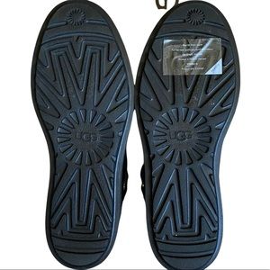 UGG Classic Berge Mini Leather and Shearling Boot, NWT/Box, Size 6, Black. Cozy, elegant, and easy to wear with all of your everyday favorites. The Classic Berge Mini is crafted from Napa leather with a beautiful Breesa sheepskin adjustable cuff and full sheepskin lining. 1” heel, 6” shaft, pull-on style, treadlite by Ugg sole provides enhanced traction on wet or slippery surfaces, leather and genuine shearling upper/ genuine shearling lining/ rubber sole.