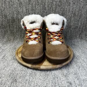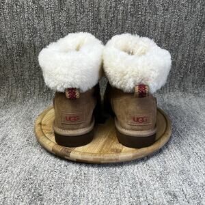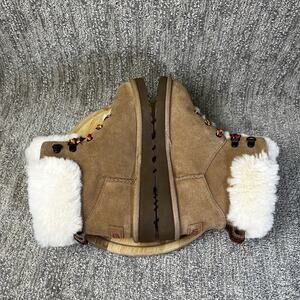 UGG Classic Mini Alpine Lace Up Chestnut Boots Women’s size 6 Brand new, no box NWOB Step into comfort and style with the UGG Classic Mini Alpine Women's Boots in a versatile chestnut brown. Crafted for women in size 6, these booties feature luxurious sheepskin lining and a cozy wool insole to keep your feet warm during the cooler seasons. The durable suede upper material pairs with a fur trim and lace accents to create a chic yet casual look that's perfect for any occasion. The round toe design ensures ample room for movement, while the low heel offers a subtle lift without sacrificing comfort. Designed with the iconic UGG Australia Classic Mini line, these ankle boots are a staple for fall, spring, and winter fashion. The synthetic outsole provides stability and longevity, making these boots a practical addition to your footwear collection.