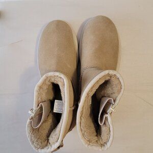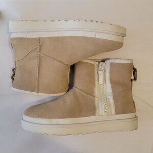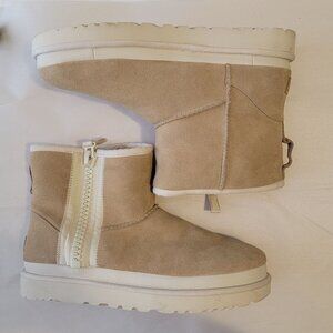 NEW UGG Classic Mini Zip Boots Womens 11 Suede Cozy Shearling Neutral Outdoors