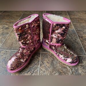 NEW!!! UGG Classic Short Pull On Sequin Boots- Pink/Gold, Women’s Size 6