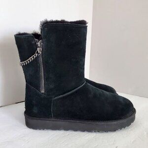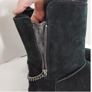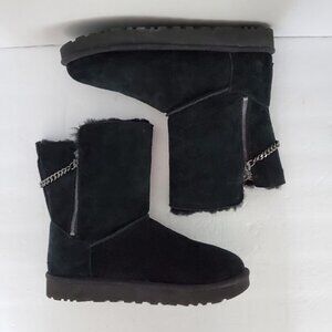 UGG Classic Short Sparkle Zip Chain Boots Black Suede - Size 10