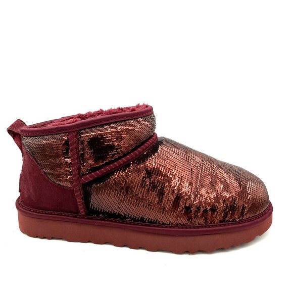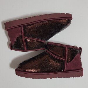 NEW UGG Classic Ultra Mini Mirror Ball Boots Womens 7 Wild Grape Sequin Fur