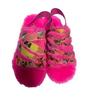 NEW! UGG Fluff Yeah Tiger Flower Taffy Pink Floral Slipper Sandal Women's 7