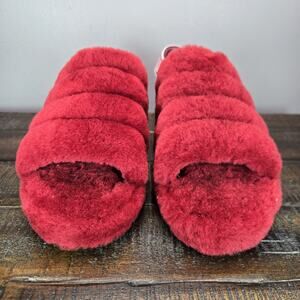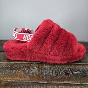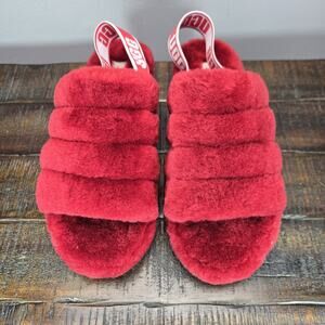 NEW UGG Fluff Yeah Womens Size 10 Slingback Slip On Shoes Slippers Red