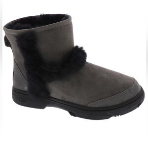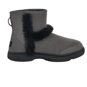 NEW! UGG GREY SUNBURST MINI SUEDE/ SHEEPSKIN COMFORT BOOTS