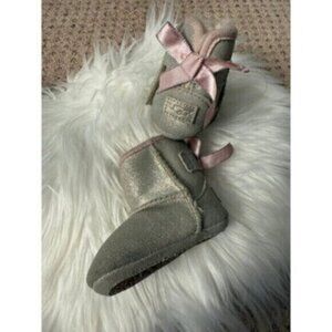 NEW UGG Infant Newborn 0/1 Jesse Bow II Gray Metallic Boots