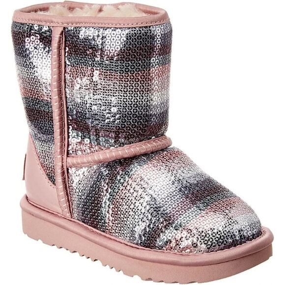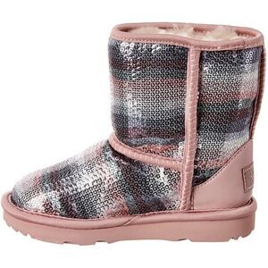 NEW UGG Kid Baby Classic II Sequin Rainbow Sheepskin Fur Lined Short Mid Boot
