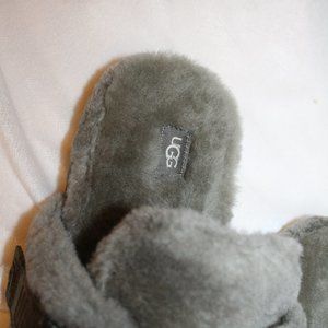 NEW UGG MEN'S FUR SLIP ON SLIPPERS GRAY 14