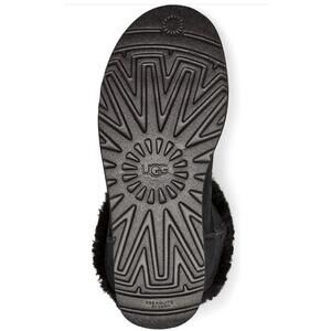 A glitter suede boot with a back bow with UGG plush lining offers a chic style while also keeping your feet cozily warm.