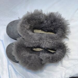 New without box. UGG Mini Bailey Button Bling Swarovski size 9, EU 40, Japan 26, UK 7. Gray suede with Swarovski oversized button on side and small cz studded trim around logo patch at back heel. Plush fur and sheepskin lining. Excellent new condition. No flaws, Tried on but never worn. S/N 1016554. Made in Philippines. Non smoking no pet home.