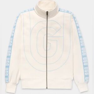 Made from 48% recycled cotton, our two-sided brushed fleece offers fluffy softness inside and a clean, sweatshirt-like finish on the outside. Adding this cozy and versatile material to a full-zip track jacket, the Reverie features a chain-stitched UGG logo at the chest, plus repeat graphic logo trim along its sleeves. Pair with joggers, denim, or our matching track pants. This product was made in a factory that supports women in our supply chain with the help of HERproject, a collaborative initiative that creates partnerships with brands like ours to empower and educate women in the workplace.