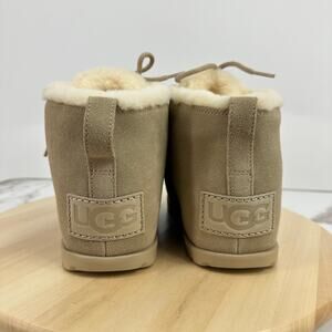 NEW UGG Size 6 Pumped Faux Fur Trim Mustard Seed Platform Suede Bootie Shoes