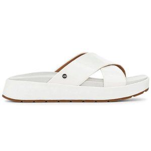 NEW UGG Size 9 Emily Square Toe Platform Cross Slide Sandals - White Patent