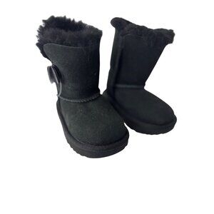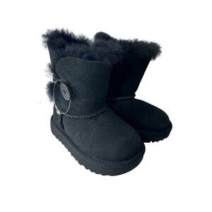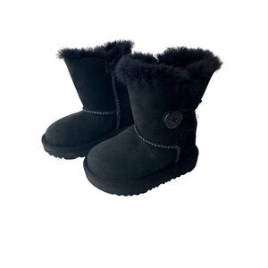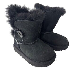 NEW UGG Toddler Bailey Button II Water-resistant Black Suede Boot Shearling Size US Toddler 6 EU 22 UK 5 New w/ out box- Sole marked to prevent return to retail store Water resistant suede upper Sheepskin lining and Insole Treadlite by UGG outsole 100% authentic-hologram inside Features: • shearling Size: Girls 6 Condition: New Without Box
