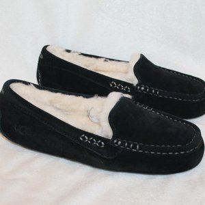 NEW UGG WOMEN'S ANSLEY SUEDE SHEARLING LINED MOCCASSIN SLIPPERS BLACK