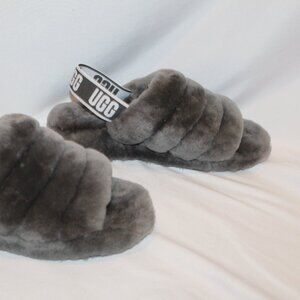 NEW UGG WOMEN'S FLUFF YEAH GRAY SHEARLING SLIPPER SANDALS