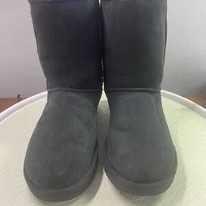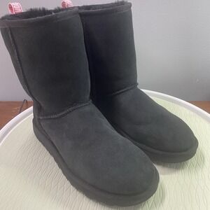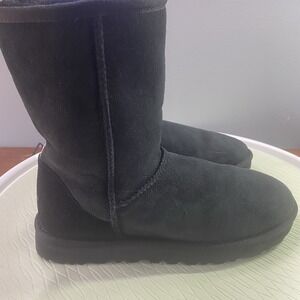 NEW UGG Women's Classic Short Graphic Logo Fashion Boot Black Women Sz 7 Suede