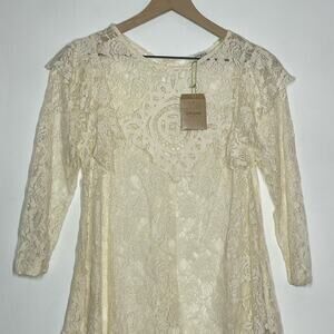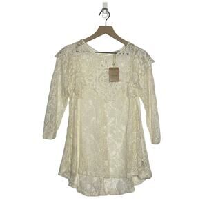 NEW UMGEE Floral Lace Top Women's Size Small Cream Crochet Ruffle 3/4 Sleeve