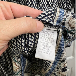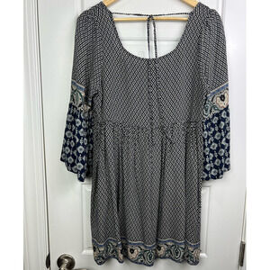 NWOT UMGEE Women's Navy Blue Black BOHO TIE BACK BABYDOLL MINI DRESS Bohemian Pheasant Dress Medium