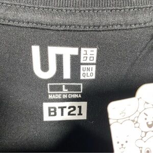NEW UNIQLO BT21 BTS Black Graphic UT T-Shirt Character Signatures Unisex Sz L