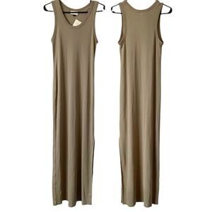 NEW UNIVERSAL THREAD Tank Maxi Dress with Slit Hem Brown Size Large Coastal Boho Casual Summer Stretch Ribbed Scoop Neck