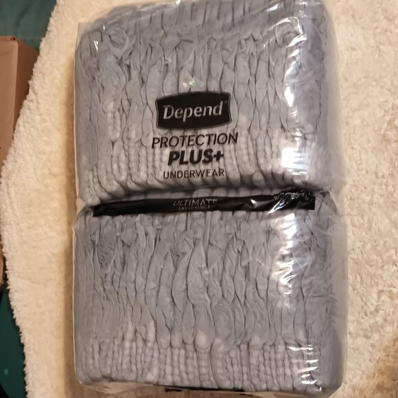 This package contains 38 brand new, unused Depends size small/medium Depend Protection Plus+ Disposable Underwear.