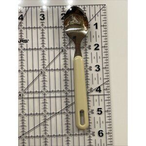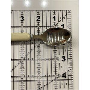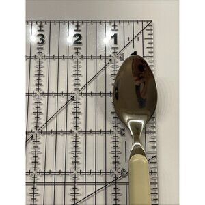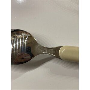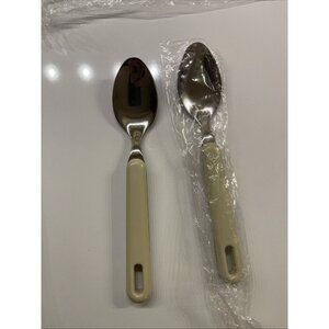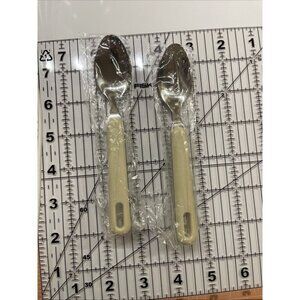 NEW UNUSED Vintage Set Of 2 Stainless Steel Spoons Off White Melamine Handles 6”