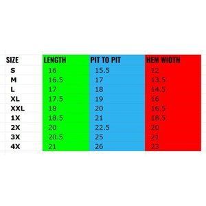 Womens cut. See size chart in pics for measurements. Size up appropriately for a looser fit and/or longer hem.