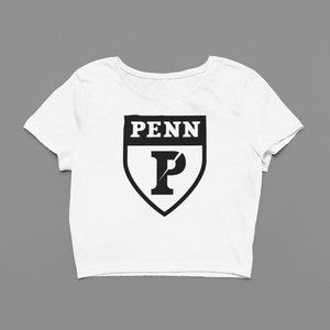NEW UPENN Quakers Big Monotone Logo Form Fit Crop Top Shirt WHITE