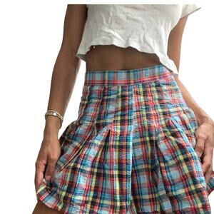 NEW URBAN OUTFITTERS Plaid Pleated Mini Skirt S Rainbow Seersucker Twee Preppy