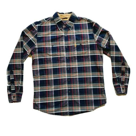 NEW US Polo Assn Plaid Button Down Shirt Long Sleeve Cotton Blend Pocket Thick M