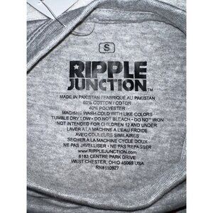 Show off your patriotic spirit with this NEW small size Ripple Junction American Flag T-shirt. This gray tee made of cotton(+1) material showcases a vibrant graphic print.